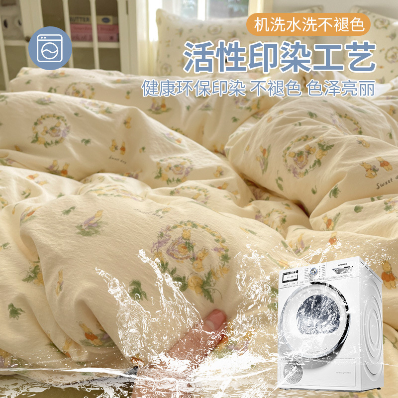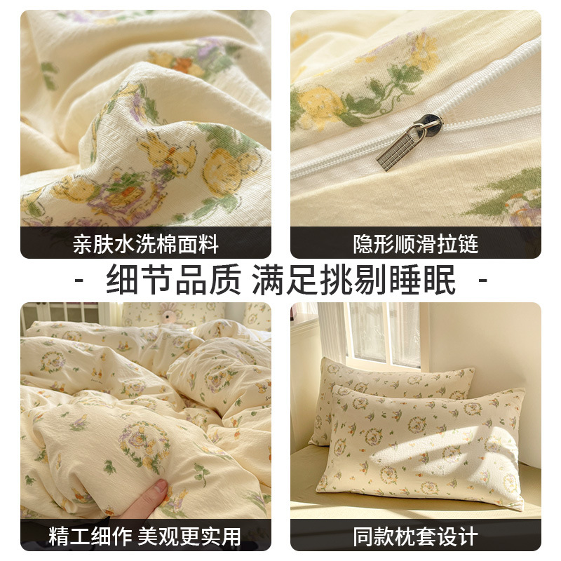 云感双层纱材质:Made of cloud - like double - layer yarn, this bedding set offers an extremely soft and fluffy touch, just like sleeping on a cloud. The double - layer yarn structure is breathable and moisture - wicking, keeping you comfortable throughout the night, and it's especially suitable for those who like to sleep nude. (采用云感双层纱材质,这套床上用品触感极其柔软蓬松,仿佛睡在云端。双层纱结构透气吸湿,让你整晚都感到舒适,特别适合喜欢裸睡的人。)