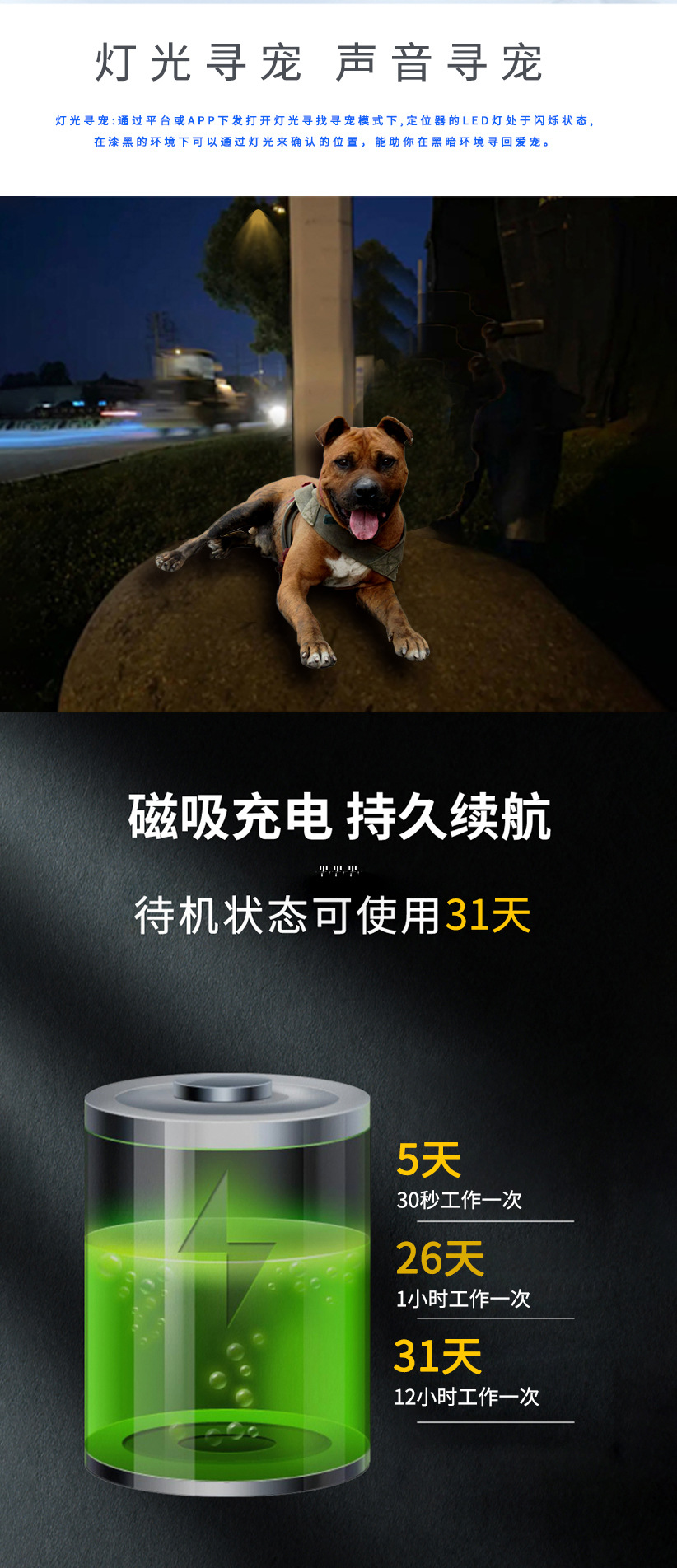 充电灯(红)+GPS(黄)+4G(蓝)+录宠灯(白) |