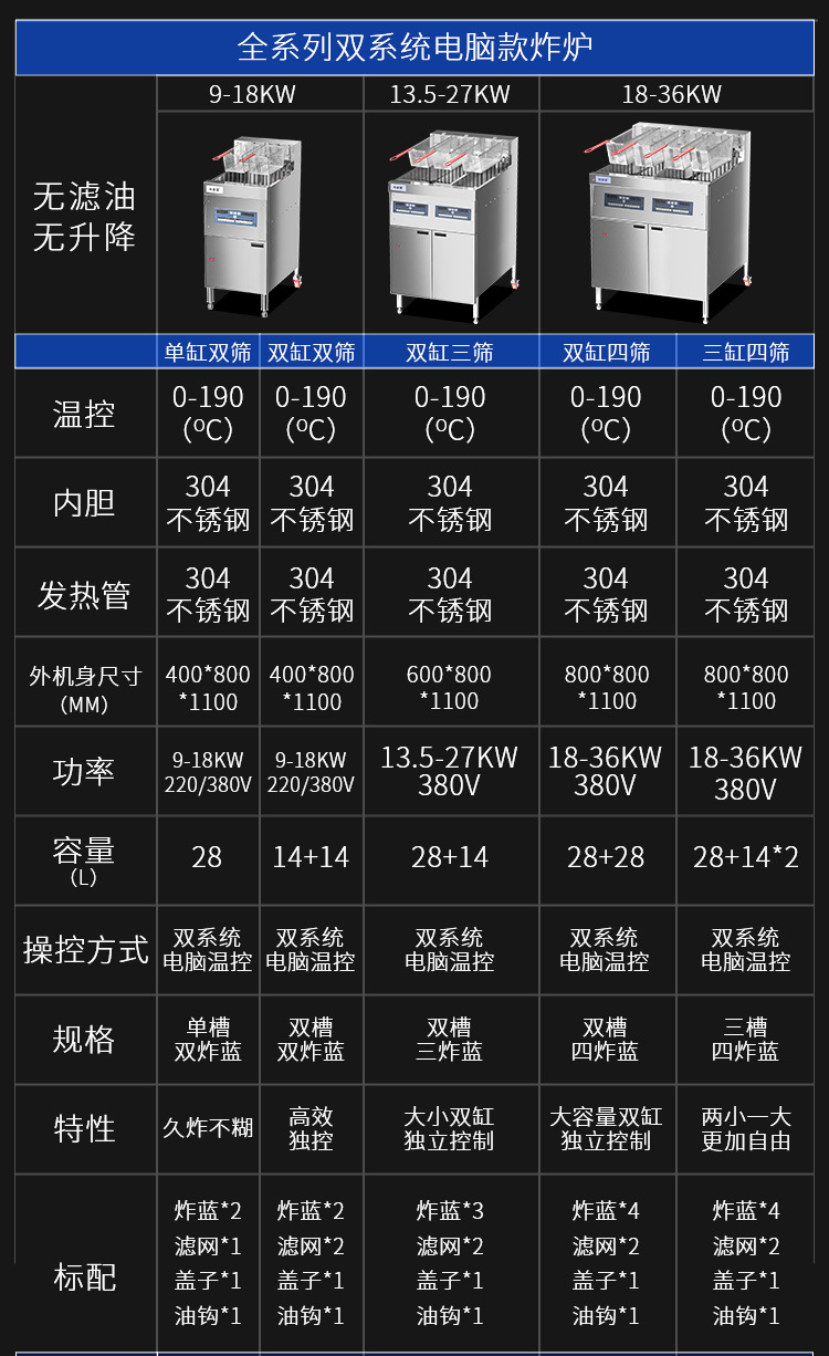 $1660| Order No. : WAS-1314,Electric fryer,Adibao,Leisure fast food equipment,One year warranty for the whole machine,220V9KW timer 28L single slot Fryer-simple operation,220V9KW computer version 28L single slot Fryer-long frying does not paste,220V9KW computer version 14 + 14L double slot Fryer-independent control,380V18KW computer version 28L single slot Fryer-fast heating,380V18KW computer version 14 + 14L double slot Fryer-high efficiency independent temperature control,220V9KW computer version 28L single slot with filter fryer-save fuel and labor,220V9KW Computer Edition 14 + 14L Double Slot Oil Filter Fryer-Automatic Oil Return,380V18KW/9KW computer version 28L single tank with oil filter fryer-efficient fuel and labor saving,380V18KW/9KW computer version 14 + 14L double tank Fryer with filter-automatic oil return,9-18KW computer version 28L single slot automatic lifting Fryer-no need to watch,9-18KW computer version 14 + 14L double slot automatic lifting Fryer-simple and fast,9-18KW computer version 28L single slot automatic lifting belt filter fryer-no need to watch,9-18KW computer version 14 + 14L double slot automatic lifting belt filter fryer-more fuel and labor-saving,380V36KW computer version 28 + 28L double slot Fryer-two large cylinders,380V36KW computer version 14+14 + 28L three-slot Fryer-one large and two small cylinders,380V36KW computer version 28 + 28L double slot Fryer-flat tube heating tube,380V36KW PC version 28 + 28L double slot frying furnace with oil filter-flat tube heat pipe,380V27KW Computer Edition 28 + 14L Double Slot Fryer-Large and Small Cylinders,380V36KW computer version 28 + 28L double slot Fryer with filter-two large cylinders,380V36KW computer version 14+14 + 28L three-tank Fryer with filter-one large and two small cylinders,380V36KW computer version 28 + 28L double slot automatic lifting belt filter fryer,380V36KW computer version 28 + 28L double slot automatic lifting Fryer,380V27KW Computer Edition 28 + 14L Double Slot Oil Filter Fryer-Large and Small Cylinders,Single tank gas 20L (natural gas/gas) Fryer-without oil filter,Food,Entrepreneurship |