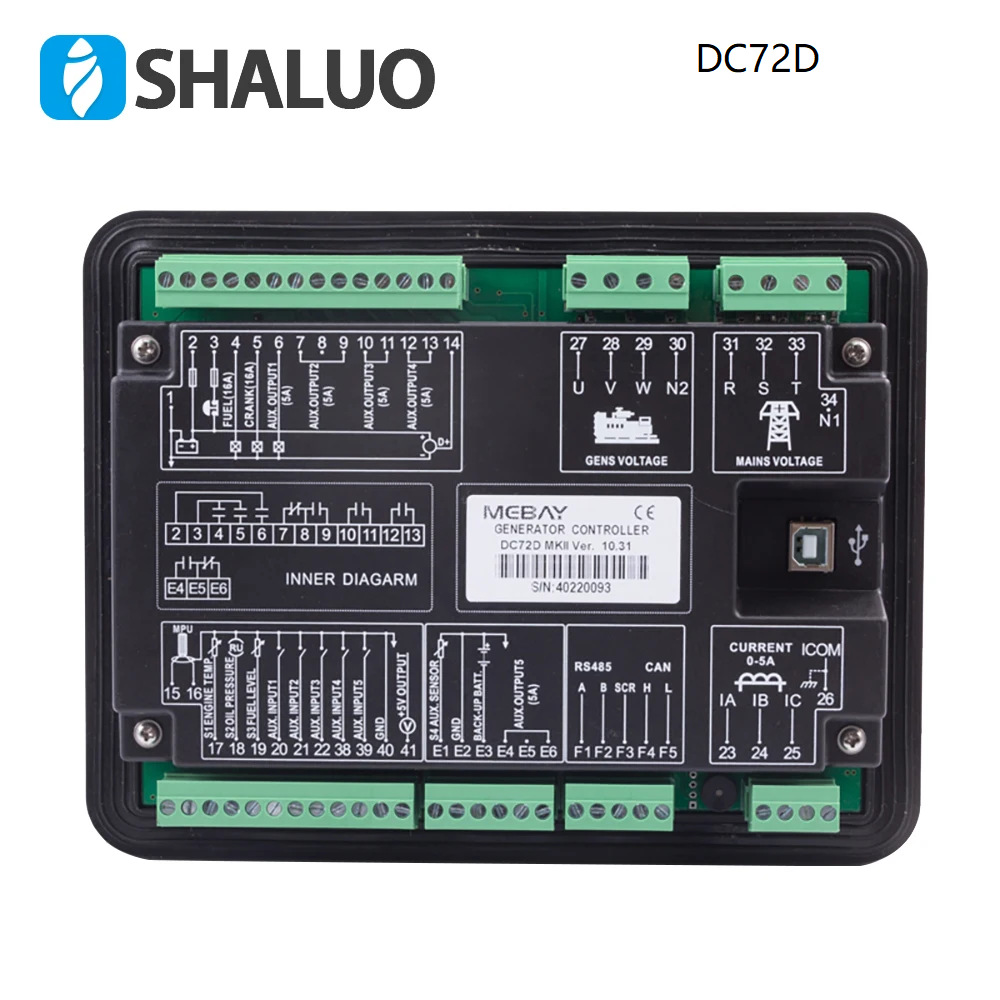 DC70D / DC72D / DC70DR / DC72DR发电机组控制器,用于柴油汽油发电机组参数监控,带4.3英寸LCD屏幕显示