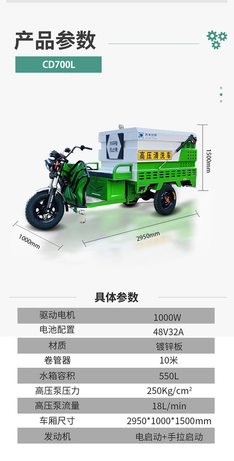 $1660| Brand : Changdian Environmental Protection,High pressure cleaning vehicle,Electric three-wheel high-pressure cleaning vehicle,Municipal sanitation,High pressure cleaning vehicle fuel customization,High pressure cleaning vehicle electric customization,Four-wheel customization of high-pressure cleaning vehicle,Municipal machinery |