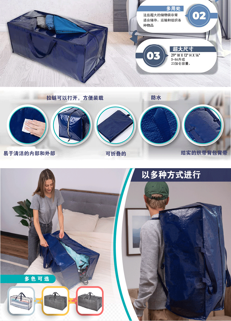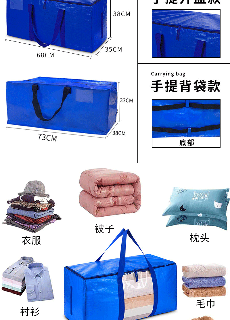$1660| Origin : Wenzhou,JPL94652,PP PE film,30-50,Plastic,Can,Handheld woven bag,Printed LOGO,Bedding bag,Jiabile,Amazon,Europe,Yes,Yes,68*34*33,Express move outdoor travel,100-200,Transparent pp woven cloth,All styles are being pre-sold, order consulting customer service,gray window pp woven cloth,blue woven pe cloth,rainbow pp woven cloth,Blue pe woven cloth; 68*34*33;100-200,Transparent pp woven cloth; 68*34*33;100-200,Rainbow pp woven cloth; 68*34*33;100-200,Grey window pp woven cloth; 68*34*33;100-200,All styles are being pre-sold, order consulting customer service; 68*34*33;100-200,Customized as required,Thickened film with large capacity,plastic woven bag |
