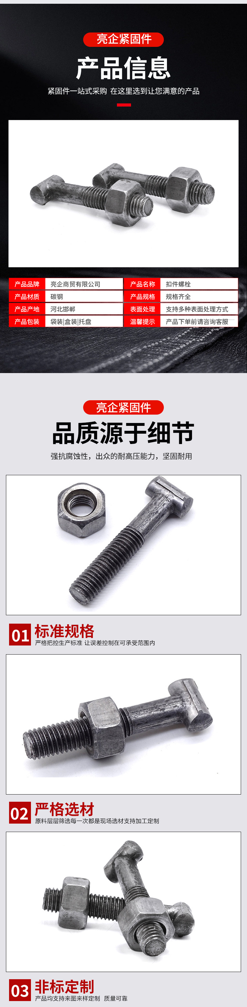 $1660| Brand : Bright Enterprise,Q235 carbon steel,Original color anti-rust,Level 4.8,GB37-88,Round head 12*70,Square head 12*70 |