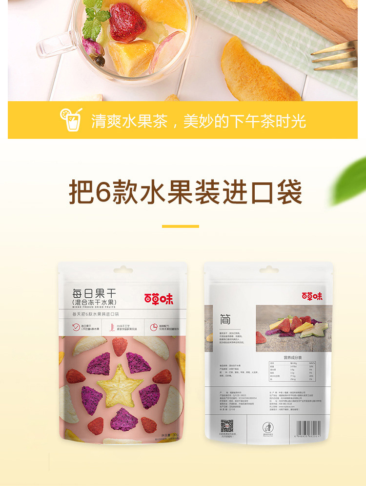 $1660| Shelf Life : 365 days,Q/FJZB 0002S,No,Dried fruit,BE & CHEERY,Zhongbao (Fujian) Food Technology Co., Ltd.,Fujian,For more information, see packaging.,Packaging,For more information, see packaging.,Store in a sealed, cool and dry place,6948939662064,30g,SC10435062800054,6948939662064,Mixed freeze-dried fruit 30g,All year round,Simple series,Room temperature,Freeze-drying |
