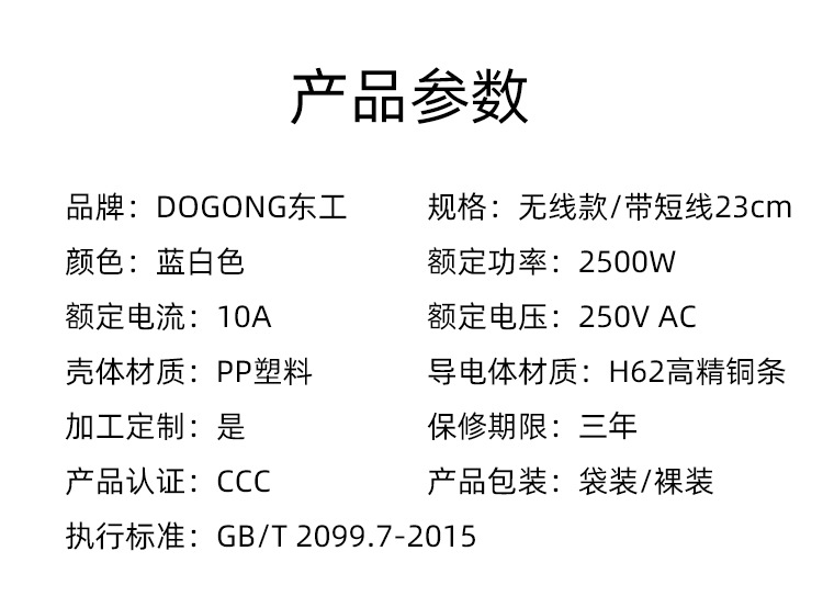 $1660| Standard Type : National Standard,DOGONG/Donggong,10,AC250,PP,Brass,CCC,Specific in kind shall prevail,2500,Household, office, cabinet, engineering, industrial, etc.,Specific in kind shall prevail,Yes,HP10005025,220V above 250V and below,1 Plug position without line A01,2 Plug position without line A02,2 Plug position without line B09,3 Plug position without line A03,3 Plug position without line 427K,3 plug position without line 413K,4 plug position without line 407W,4 plug position without line 414K,5 Plug position without line 415K,6 Plug-in position without line 402,6 Insert position without line 109K,6 Plug-in position without line 416K,8 Plug-in position without line 403,8 Plug-in position without line 604,10 Plug-in position without line 605,16A high power 701 without line,16A high power 704 without line,Project funds without line B8,2 Insert with short line 23cm A02,3 Insert with short line 23cm A03,3 Insert with short line 23cm 413K,4 socket with short line 23cm 407W,4 socket with short line 23cm 414K,5 Insert with short line 23cm 415K,6 Insert with Short Line 23cm 109K,6 socket with short line 23cm 416K,8 Insert with Short 23cm 403,10 Insert with short line 23cm 605,Wiring socket,GB/T 1002-2008;GB/T 2099.1-2008;GB/T 2099.7-2015 |