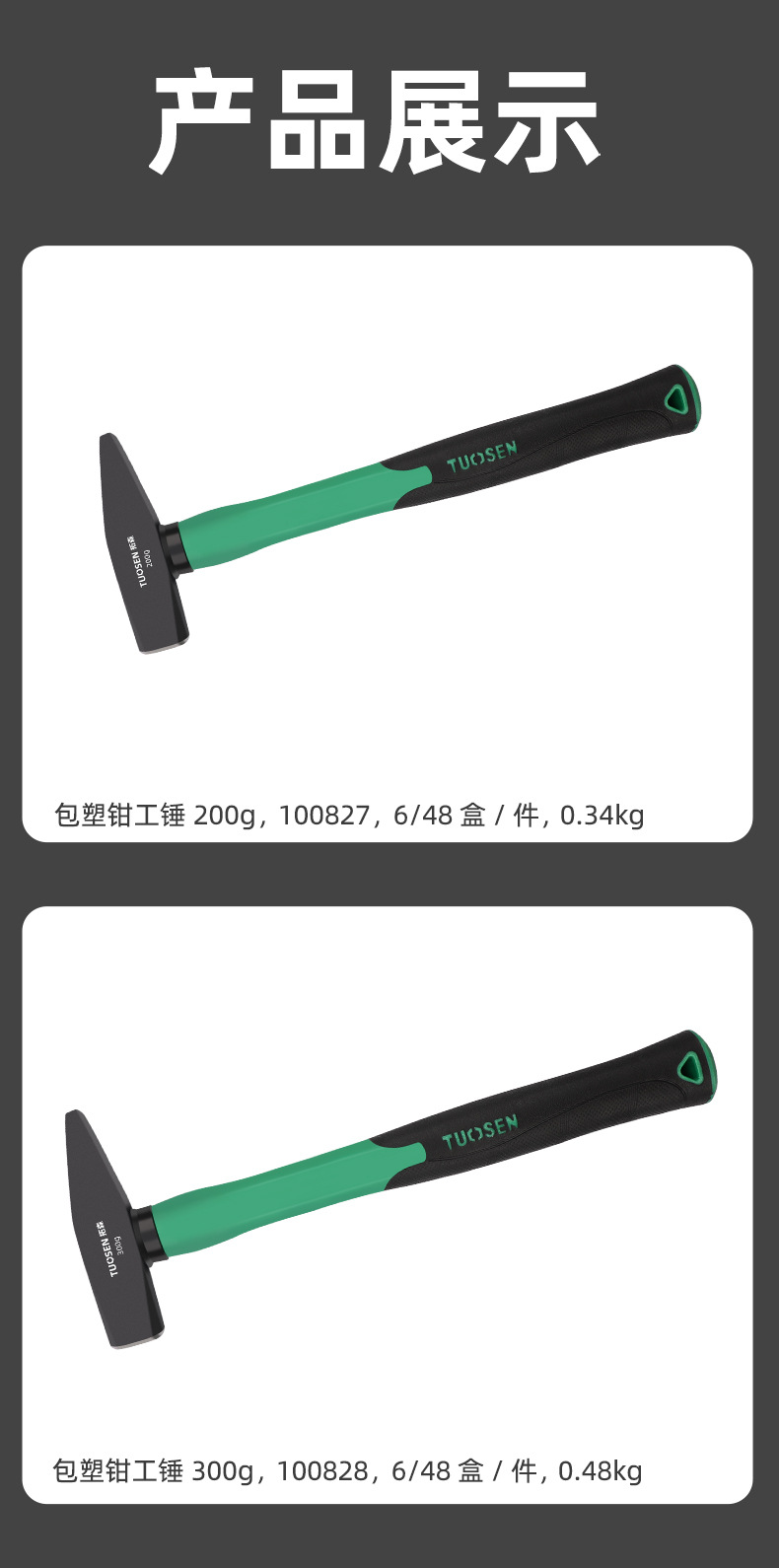 $1660| Origin : Linyi,No,100827/100828/100829,TUOSEN/TUOSEN,100827/100828/100829,100827-200g plastic-coated fitter hammer, 6/Box 48/piece, 0.35K,100828-300g plastic-coated fitter hammer, 6/Box 48/piece, 0.45kg,100829-500g plastic-coated fitter hammer, 6/Box 48/piece, 0.75kg,Fitter hammer,45 carbon steel,No,Yes,Fiber handle,280-305-335,Home improvement, construction site.,Percussion,No,0.35-0.45-0.75,wish,AliExpress,Independent Station,LAZADA,Other,South America,Southeast Asia,North America,Northeast Asia,Middle East,Other,Yes,Yes,Hammer Fitter Hammer |