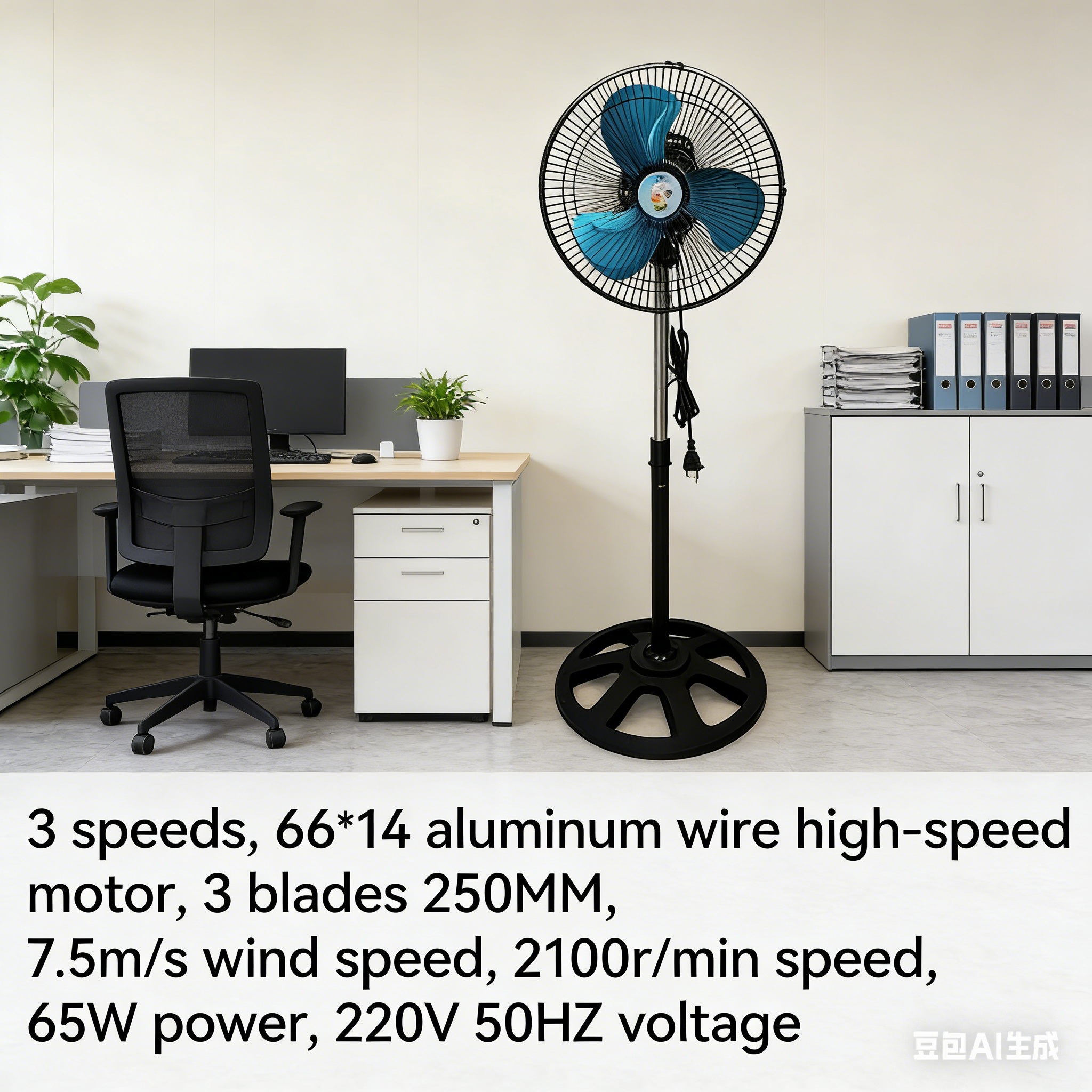 Efficient Airflow: Features 3 blades (250mm) and a maximum speed of 2100 RPM, delivering an airflow velocity of 7.5 m/s for quick cooling.