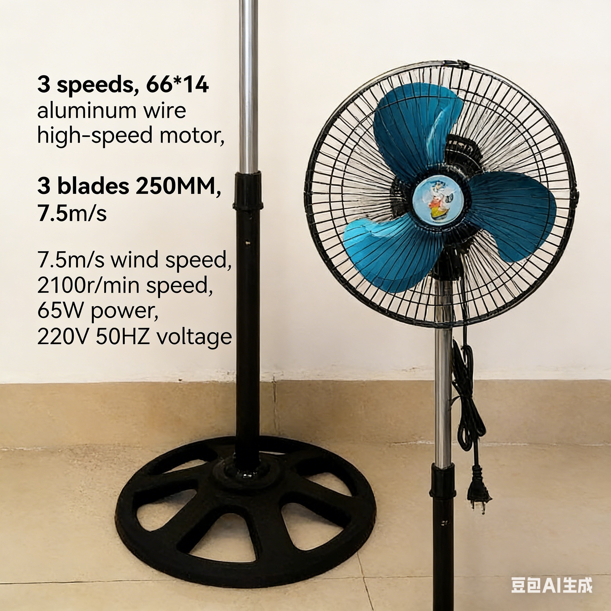 $1660| Type : Floor | Timing : No | Oscillation : No | Blade Diameter : 250mm | Nominal Voltage : 220v | Rated Power : 65w | HZ : 2100r/min | Remote Control : No | Solar Function : No | Support DC : No | Payment Terms : AliPay/WeChatPay, L/C, D/A, D/P, T/T, Western Union, MoneyGram, AFP Collection, Other | delivery Time : 15 | Product Advantages : Well and High Quality Control, Prompt Delivery, Welcome customer designs and trademarks, Competitive Prices |